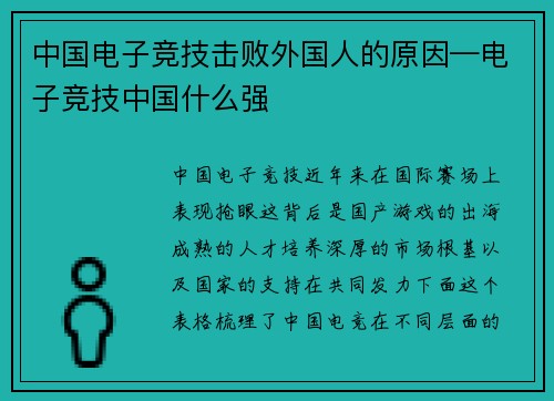 中国电子竞技击败外国人的原因—电子竞技中国什么强